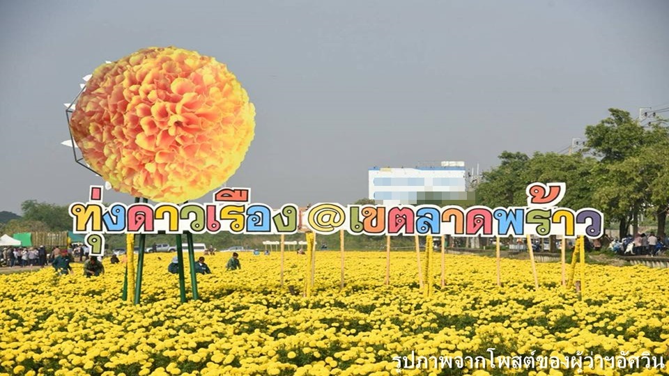 พล.ต.อ.อัศวิน ขวัญเมือง ผู้ว่าราชการกรุงเทพมหานคร (กทม.) กล่าวว่า กทม.โดยสำนักงานเขตลาดพร้าว ได้จัดกิจกรรม “เที่ยวลาดพร้าว รับลมหนาว ชมดาวเรือง” โดยเนรมิตพื้นที่ขนาด 10 ไร่ บริเวณริมถนนประเสริฐมนูกิจ หลังโรงเรียนสตรีวิทยา 2 เขตลาดพร้าว ของบริษัท สยามประชาคาร จำกัด ให้เป็นทุ่งดอกดาวเรืองสีเหลืองอร่าม จำนวน 19,999 ต้น เพื่อพัฒนาที่ดินว่างเปล่าให้เกิดประโยชน์ ตามแนวทางเปลี่ยนพื้นที่เปลี่ยวเป็นพื้นที่โปร่ง ซึ่งเป็นหนึ่งในนโยบาย “ผลักดันทันใจ แก้ไขทันที NOW!” ที่ตนและคณะผู้บริหาร กทม.ร่วมกันกำหนดขึ้นมา เพื่อดูแลความเป็นอยู่และคุณภาพชีวิตของพี่น้องประชาชนให้ดีที่สุด