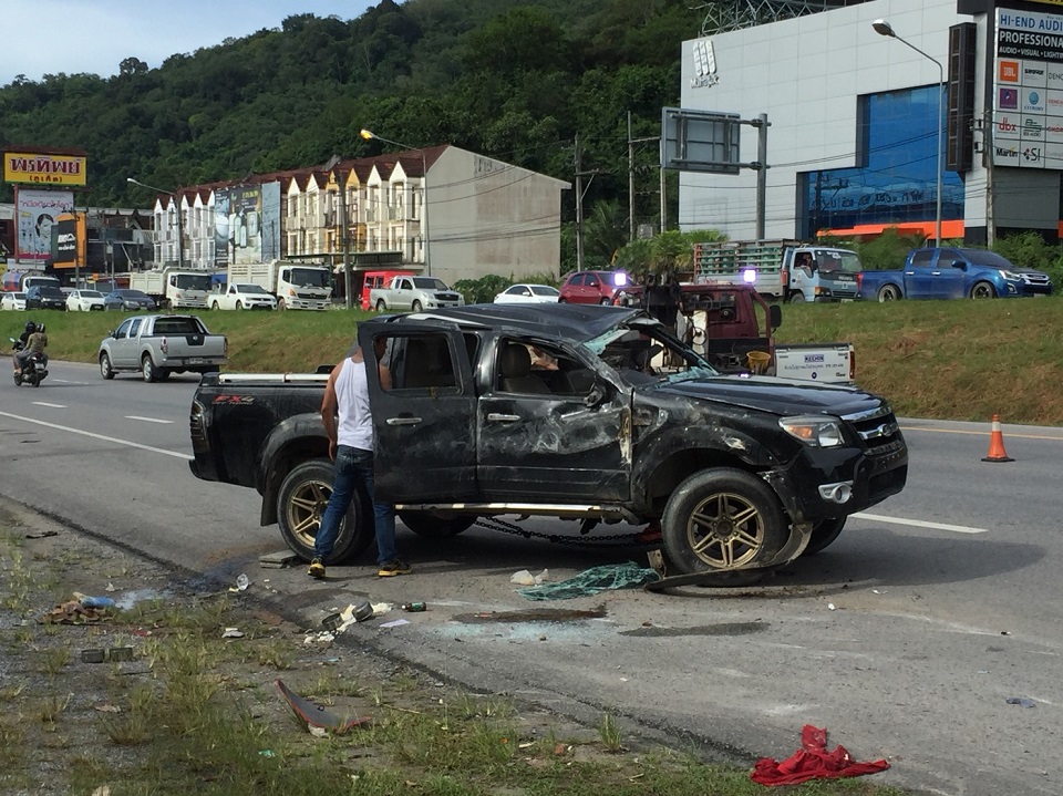 ภูเก็ต 15 พ.ย.- เกิดอุบัติเหตุสายบายพาสขาเข้าเมืองภูเก็ต รถกระบะรับคนงานเสียหลักพลิกหลายตลบ มีผู้เสียชีวิต 1 เจ็บอีก 7 ราย