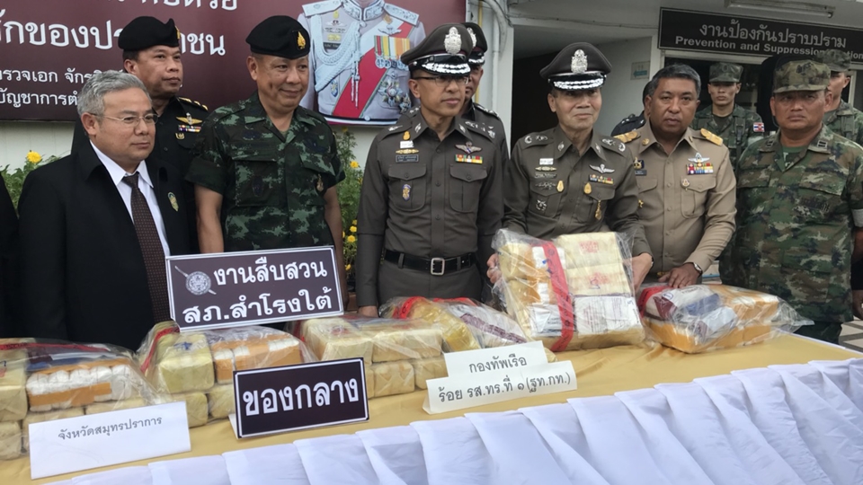 วันนี้(15 พ.ย.)ที่ สภ.สำโรงใต้ จ.สมุทรปราการ พล.ต.ท.สุวัฒน์ แจ้งยอดสุข รักษาราชการแทน ผบช.ภ.1 พร้อมด้วยนายกมล เชียงวงค์ รองผู้ว่าราชการจังหวัดสมุทรปราการ พล.ต.ต.ธรรมนูญ ไตรทิพยพงศ์ ผบก.ภ.จว.สมุทรปราการ พ.ต.อ.ประเสริฐ บัวขาว ผกก.สภ.สำโรงใต้ ร่วมกันแถลงผลการตรวจยึดยาบ้า จำนวน 850,000 เม็ด ที่ตำรวจชุดจับกุมตรวจยึดได้ หลังสืบทราบว่า จะมีการนำยาเสพติดเข้ามาซุกซ่อนภายในพื้นที่ชุมชนเปรมฤทัย ต.สำโรงใต้ อ.พระประแดง จึงได้บูรณากำลังตำรวจ ทหาร และฝ่ายปกครอง เข้าปิดล้อมตรวจค้น จนกระทั่งพบยาบ้าของกลาง บรรจุในถุงกระสอบปุ๋ย รวม 9 ถุง ซุกซ่อนอยู่ในป่าหญ้าใกล้เคียงบ้านเครือข่ายยาเสพติด แต่ไม่พบกลุ่มผู้กระทำความผิด