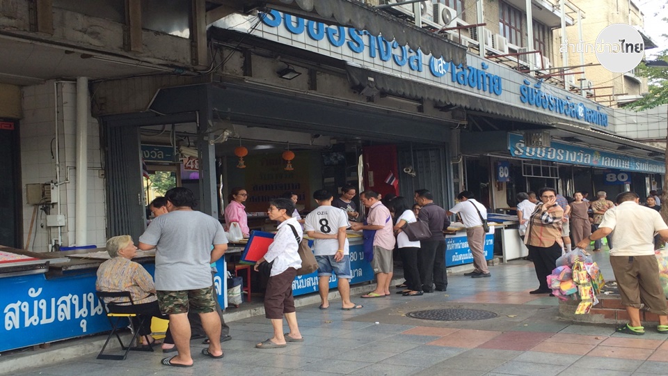 ถ.ราชดำเนิน 16 พ.ย. – บรรยากาศซื้อขายสลากกินแบ่งรัฐบาลแยกคอกวัวซบเซา ผู้ค้าสลากโอดยอดขายร่วง แห่ลดราคาหนีขาดทุน