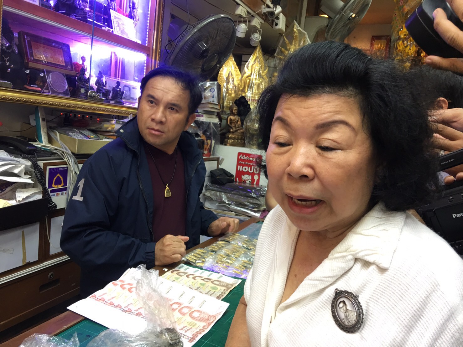 เวลา 10.15 น. พันตำรวจเอกธงชัย อยู่เกษ ผู้กำกับการ 1 กองบังคับการปราบปราม เปิดเผยความคืบหน้าคดีการล่อซี้อจับกุมร้านที่จำหน่ายเข็มที่ระลึก ในงานพระราชพิธีถวายพระเพลิงพระบรมศพ พระบาทสมเด็จพระปรมินทรมหาภูมิพลอดุลยเดช ปลอม ย่านท่าพระจันทร์ ยึดของกลางเข็มที่ระลึกปลอมจำนวน 100 เข็ม พร้อมทั้งจับกุมนางทัศนีย์ หอจรัสกุล อายุ 65 ปี ซึ่งเป็นผู้จำหน่ายสินค้าปลอม เมื่อวานนี้ ว่าจากการสอบปากคำผู้ต้องหารับว่า มีคนที่ส่งของให้เป็นประจำมาสอบถาม จึงสั่งซื้อไว้ขาย ซึ่งรู้ว่าเป็นของเลียนแบบ ส่วนข้อมูลแหล่งผลิตยังอยู่ระหว่างขยายผลตรวจสอบหาเอกสารสั่งซื้อสินค้า เพื่อขยายผลไปยังผู้ผลิตสินค้าปลอมดังกล่าวต่อไป ซึ่งในวันนี้ตำรวจจะลงพื้นที่ตรวจสอบที่ร้านอีกครั้ง เพื่อเก็บหลักฐานเอกสารการสั่งซื้อ บิลใบเสร็จ หาความเชื่อมโยงไปยังแหล่งผลิต ส่วนประเด็นอาจมีเครือญาติ เป็นผู้ผลิตหรือไม่ก็มีความเป็นไปได้ ยังไม่ได้ตัดประเด็นนี้ทิ้ง เชื่อว่าการผลิตไม่ถึงกับเป็นโรงงานใหญ่จัดทำ