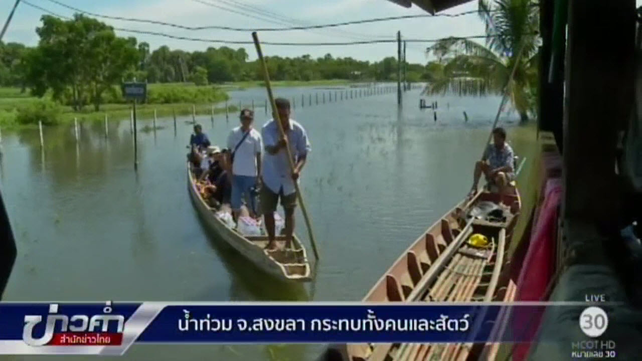 สงขลา 10 ธ.ค.-สถานการณ์น้ำท่วมในพื้นที่ภาคใต้ โดยเฉพาะบริเวณต.คลองรี อ.สทิงพระ ติดริมทะเลสาบสงขลา ขณะนี้ไม่เพียงส่งผลกระทบต่อคน ยังส่งผลต่อสัตว์เลี้ยงด้วย ติดตามจากรายงาน.-สำนักข่าวไทย