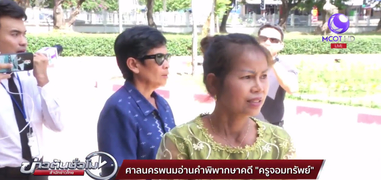 นครพนม 17 พ.ย. – ศาลจังหวัดนครพนมเริ่มอ่านคำพิพากษาศาลฎีกา กรณีนางจอมทรัพย์ แสนเมืองโคตร อายุ 55 ปี หรือครูจอมทรัพย์ ขอรื้อฟื้นคดีอุบัติเหตุขับรถยนต์ชนคนตายเมื่อวันที่ 11 มีนาคม 2548 และครูจอมทรัพย์ได้รับการอภัยโทษหลังติดคุก 1 ปี 6 เดือน โดยมีนายพงศา ราตรี ทนายฝ่ายกฎหมายกระทรวงยุติธรรม และนายชาญวิทย์ เพียแสน นักทัณฑวิทยาชำนาญการ ผู้รับผิดชอบดูแลการรื้อฟื้นคดี เข้าร่วมรับฟังการอ่านคำพิพากษา และให้ตัวแทนสื่อมวลชนเข้ารับฟังได้ 1 คน ขณะที่ครูจอมทรัพย์ ยืนยันพร้อมน้อมรับคำตัดสินของศาลไม่ว่าจะออกมารูปแบบใด. – สำนักข่าวไทย