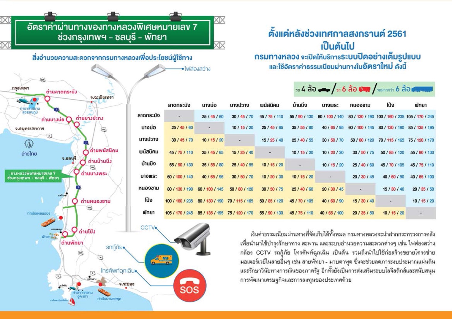 ช่วง ชลบุรี – พัทยา หลังสงกรานต์ 61 เก็บตามระยะทาง