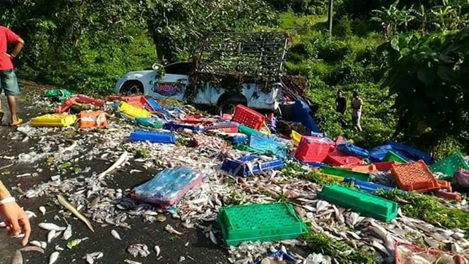 ตำรวจ สภ.ทุ่งสง จ.นครศรีธรรมราช ได้รับแจ้งเกิดเหตุรถยนต์กระบะบรรทุกอาหารทะเลเสียหลักชนต้นไม้ที่บริเวณริมถนนสายเอเชีย 41 พื้นที่ ต.ถ้ำใหญ่ อ.ทุ่งสง มีผู้ได้รับบาดเจ็บ 1 คน หลังรับแจ้งจึงรุดไปตรวจสอบที่เกิดเหตุ พบรถยนต์กระบะ ยี่ห้ออีซูซุ สีขาว ทะเบียน บน-9359 สตูล ติดกรงเหล็กที่กระบะท้าย ชนต้นไม้ข้างทางอยู่ในสภาพพังยับเยิน และพบอาหารทะเลทั้งกุ้ง หอย ปู ปลา ปลาหมึก กระจัดกระจายอยู่ทั่วบริเวณ