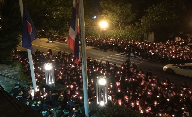ทั้งนี้ ประชาชนคนไทยและอเมริกันต่างแต่งกายด้วยผ้าสีเข้มและดำ และเดินทางมาพร้อมเทียนหอมหรือเทียนไข เพื่อร่วมสำนึกในพระมหากรุณาธิคุณในฐานะลูกๆ ของพระองค์ โดยในเวลา 24.00 น. นายธัชพงศ์ จันทรปรรณิก ผู้ประสานงานชาวไทยดีซีได้อ่านบทอาเศียรวาทพระคุณพระองค์ท่าน และหลายท่านได้สลับออกมากล่าวน้อมสำนึกในพระมหากรุณาธิคุณเป็นล้นพ้นอันหาที่สุดมิได้ ขณะที่นายพิศาล มาณวพัฒน์ เอกอัครราชทูตฯ ขอให้แสดงความรักพระองค์ด้วยการน้อมสำนึกในพระราชกรณียกิจน้อยใหญ่มากมายที่ต้องเจริญรอยตามพระองค์ท่าน