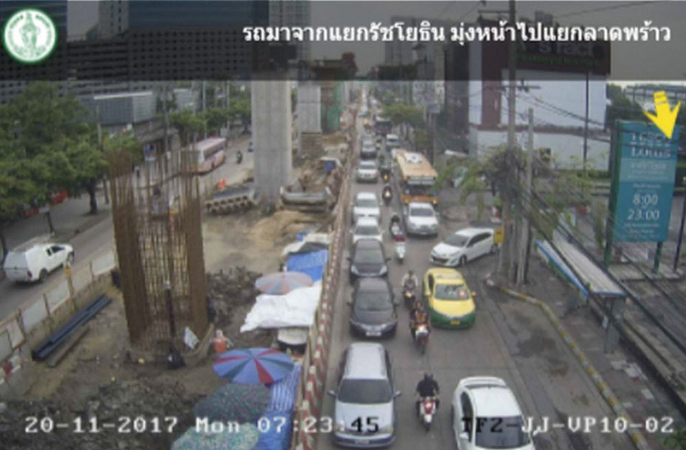 กทม. 20 พ.ย.-สวพ.FM91 รายงานจราจรเช้าวันจันทร์ ถนนพหลโยธิน ขาเข้า มุ่งหน้าแยกลาดพร้าว รถมาก เคลื่อนตัวได้ช้าๆ