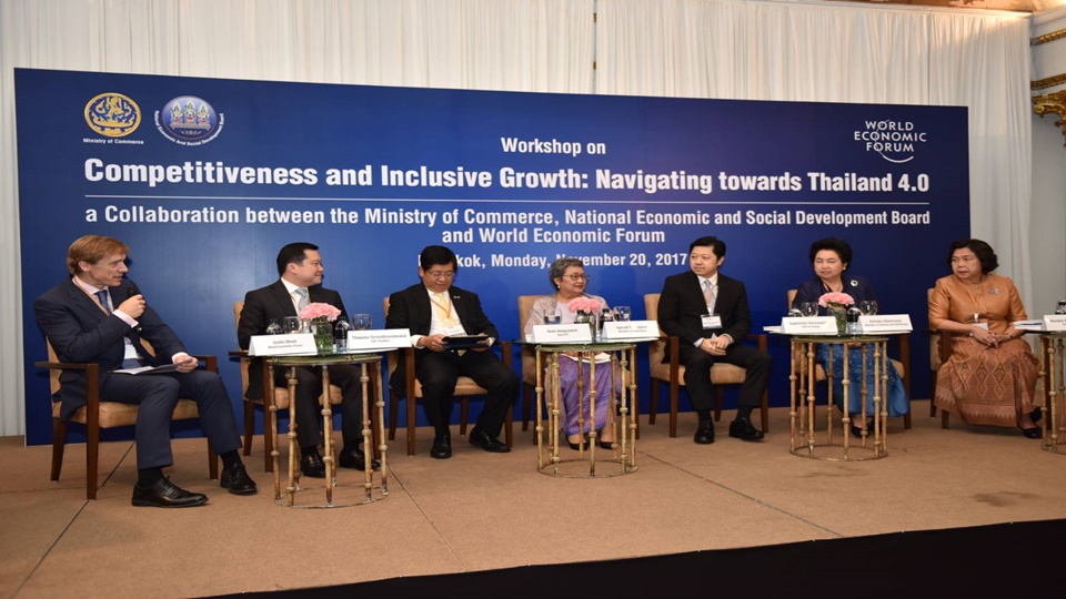 กรุงเทพฯ 20 พ.ย. – พาณิชย์จับมือ สศช.และ WEF เพิ่มความรู้ภาครัฐ-เอกชน หวังเสริมความสามารถการแข่งขันตามเป้า Thailand 4.0 มั่นใจหลังไทยอันดับดีขึ้นจาก 34 มาอยู่ 32 จาก 137 ประเทศทั่วโลก
