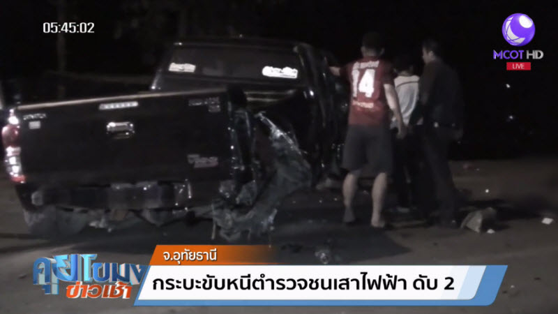 อุทัยธานี 21 พ.ย. – คนร้ายขับรถกระบะหนีตำรวจเสียหลักชนป้ายเหล็กและเสาไฟฟ้าข้างทางที่ จ.อุทัยธานี เสียชีวิต 2 ราย ส่วนเจ้าหน้าที่บาดเจ็บ 3 นาย