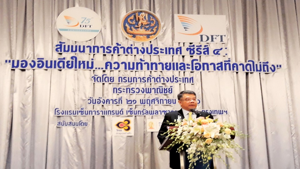 นายอดุลย์ โชตินิสากรณ์ รองอธิบดีกรมการค้าต่างประเทศ รักษาราชการแทนอธิบดีกรมการค้าต่างประเทศ กล่าวในการสัมมนาการค้าต่างประเทศ ซีรีส์ 4 “มองอินเดียใหม่..ความท้าทายและโอกาสที่คาดไม่ถึง” จัดโดยกรมการค้าต่างประเทศเป็นครั้งสุดท้ายของปีนี้ ซึ่งมีผู้ประกอบการสนใจตอบรับเข้าร่วมงานกว่า 1,300 คน เนื่องจากอินเดียมีอัตราการขยายตัวทางเศรษฐกิจร้อยละ 7-8 ต่อเนื่องมาหลายปี และยังมีแนวโน้มที่ดี หากเทียบกับจีนที่เศรษฐกิจเริ่มทรงตัว ถือว่าเป็นโอกาสของการค้าและการลงทุนของไทย เนื่องจากสินค้าไทยเป็นที่นิยมในอินเดีย ประกอบกับมีความตกลงภายใต้เขตการค้าเสรี (เอฟทีเอ) ไทย-อินเดีย และกรอบเอฟทีเออาเซียน-อินเดีย ทำให้การค้าของไทยเกินดุลการค้ากับอินเดียตลอด โดยมูลค่าการค้าระหว่างกันเฉลี่ยปีละ 8,000 ล้านดอลลาร์สหรัฐ โดยไทยส่งออกมากกว่า 5,000 ล้านดอลลาร์สหรัฐ และปีนี้คาดว่ามูลค่าการค้าระหว่างกันจะเกิน 8,500 ล้านดอลลาร์สหรัฐ หรือขยายตัวมากกว่าร้อยละ 10 แต่ผู้ประกอบการไทยยังมีทัศนะคติและไม่มีความเชื่อมั่นที่จะทำการค้ากับอินเดีย ทำให้การบุกตลาดอินเดียยังคงจำกัดเฉพาะบริษัทขนาดใหญ่และรายเดิมเท่านั้น