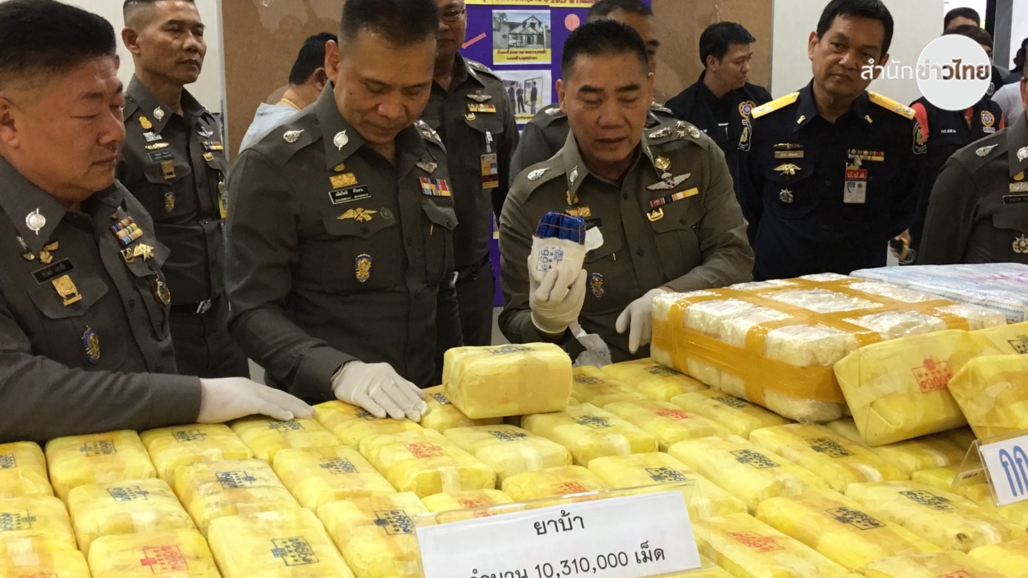 กทม.21 พ.ย.- ตำรวจนครบาล 8 ร่วมกับสืบสวนนครบาล โชว์จับขบวนการค้ายาเสพติดรายใหญ่ที่สมุทรปราการ ยึดยาบ้าได้กว่า 10 ล้านเม็ด มูลค่ากว่า 1,000 ล้านบาท สั่งเข้มชายแดนอีสานเส้นทางลำเลียง