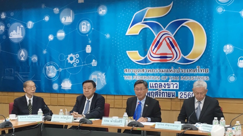 นายเจน นำชัยศิริ ประธานสภาอุตสาหกรรมแห่งประเทศไทย (ส.อ.ท.) เปิดเผยผลการสำรวจดัชนีความเชื่อมั่นภาคอุตสาหกรรมเดือนตุลาคม 2560 ว่า ดัชนีความเชื่อมั่นฯ ลดลงอยู่ที่ระดับ 85.9 จากระดับ 86.7 ในเดือนกันยายน 2560 เนื่องจากผู้ประกอบการเห็นว่ากิจกรรมทางเศรษฐกิจและการใช้จ่ายภายในประเทศชะลอตัวลงเมื่อเทียบกับเดือนก่อนหน้า