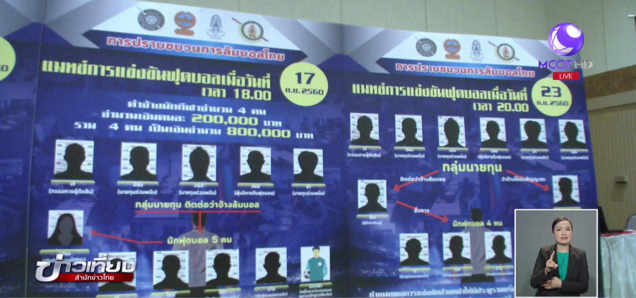 กทม. 22 พ.ย. – หลังมีการแถลงข่าวเปิดโปงขบวนการล้มบอลและมีการจับกุมดำเนินคดีกับ 12 ผู้ต้องหา มีทั้งนักฟุตบอล กรรมการ และกลุ่มนายทุน ขณะที่ผู้บริหารสโมสรศรีสะเกษ เอฟซี เตรียมเปิดแถลงข่าวไม่มีส่วนรู้เห็นกับขบวนการล้มบอลในช่วงบ่ายวันนี้