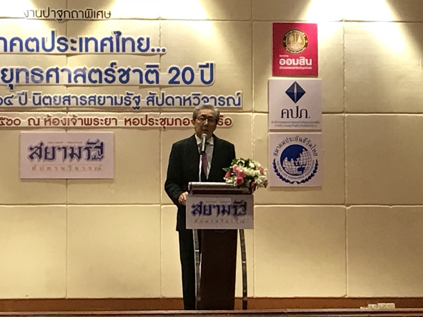 นายสมคิด จาตุศรีพิทักษ์ รองนายกรัฐมนตรี กล่าวในงานสัมมนา “อนาคตประเทศไทย ตามแผนยุทธศาสตร์ชาติ 20 ปี” ว่า หลายปัจจัยทางเศรษฐกิจเร่ิมดีขึ้นต่อเนื่อง การส่งออกเดือนตุลาคมขยายตัวร้อยละ 13 จึงทำให้ทั้งปีขยายตัวได้ร้อยละ 10 และปีหน้าจะสูงขึ้นต่อเนื่อง หลังจากจีดีพีไตรมาส 3 ขยายตัวร้อยละ 4.3 ปีหน้าจะดีกว่านี้เช่นกัน เพราะรัฐบาลจะเร่งขับเคลื่อนทุกปัจจัย เมื่อรัฐบาลเร่งรัดการใช้จ่าย เร่งรัดการลงทุน ภาคเอกชนจะลงทุนเพิ่มตามไปด้วย จะทำให้เศรษฐกิจค่อยปรับเพิ่ม ต่างชาติเริ่มเชื่อมั่น ขณะนี้เริ่มเห็นสื่อต่างชาติ เขียนถึงเมืองไทยว่าจีดีพีเริ่มโตแบบแข็งแรง เมื่อภารกิจแรกรัฐบาลช่วยให้เศรษฐกิจฟื้นตัวแข็งแรงได้แล้ว
