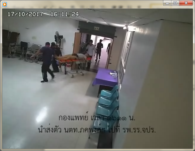 15.41 น.จ.ส.อ.วัชรินทร์ฯ (เสื้อขาว) ได้รับการร้องขอจากบิดา นตท.ภคพงศ์ฯ ให้นำโทรศัพท์ของตนไปให้ นตท.ภคพงศ์ฯ ในห้องพักฟื้น เพื่อสนทนาต่อ ขณะนำโทรศัพท์ไปให้ พบ นตท.ภคพงศ์ ฯ กำลังจะล้มลง จึงเข้าไปประคองพร้อมกับเรียกเจ้าหน้าที่มาช่วย