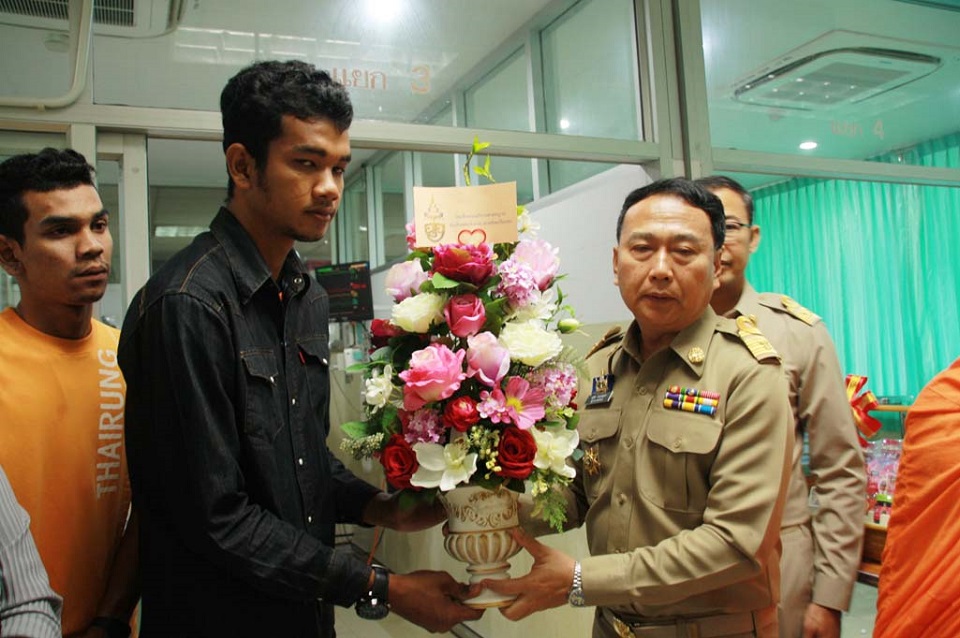 เมื่อเวลา 10.10 น. วันนี้ (24 พ.ย.) นายอนุชิต ตระกูลมุทุตา ผู้ว่าราชการจังหวัดยะลา อัญเชิญกระเช้าประทานจากสมเด็จพระอริยวงศาคตญาณ สมเด็จพระสังฆราช สกลมหาสังฆปริณายก มายังโรงพยาบาลยะลา เพื่อเยี่ยมอาการบาดเจ็บนางวนิดา ศรีแก้ว พนักงานกระทรวงสาธารณสุข ผู้ช่วยเหลือคนไข้ หน่วยไตเทียม โรงพยาบาลยะลา ถูกผู้ก่อเหตุยิงในพื้นที่ อ.บันนังสตา จ.ยะลา เมื่อวันที่ 19 พ.ย.ที่ผ่านมา โดยบุตรชายของนางวนิดา เป็นผู้รับมอบแทน ในการนี้ พระราชปัญญามุนี เจ้าคณะจังหวัดยะลา ได้มอบเงินช่วยเหลือเพื่อเป็นขวัญกำลังใจด้วย