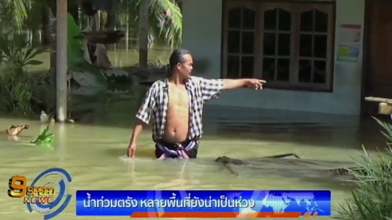 ตรัง 10 ธ.ค.-หลายพื้นที่ในอำเภอเมืองตรัง และกันตังยังมีน้ำท่วมสูงกว่า 1 เมตร ถนนหน้าวิทยาลัยสารพัดช่างตรัง มีน้ำท่วม 20-40 เซนติเมตร รถเล็กสัญจรลำบาก ขณะที่นายกฯ อบต.ควนธานี นำเรือท้องแบนออกสำรวจพื้นที่หมู่ 5 พบว่ามีน้ำท่วมสูงเกือบมิดหลังคากว่า 40 หลังคาเรือน แม้ภาพรวมน้ำลดจาก 3 เมตร เหลือประมาณ 1 เมตร 50 เซนติเมตร แต่ยังมีประชาชนเดือดร้อน ส่วนใหญ่ยังอาศัยอยู่ในบ้านเรือน เพราะเกรงว่าทรัพย์สินสูญหาย สวนยางพาราและพืชผลทางการเกษตรเสียหายกว่า 1,000 ไร่ คาดว่าหากฝนไม่ตกลงมาซ้ำ สถานการณ์จะกลับเข้าสู่ภาวะปกติในเวลาไม่เกิน 3 วัน .-สำนักข่าวไทย