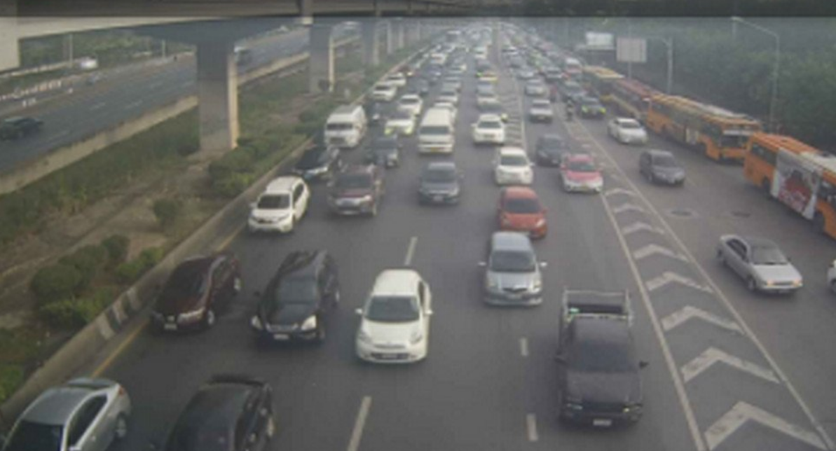 การจราจรถนนศรีนครินทร์ ขาเข้า มุ่งหน้าแยกพัฒนาการ รถติดขัด ท้ายสะสมแยกศรีนุช ส่วนถนนอ่อนนุช ไปออกถนนสุขุมวิท ก็มีท้ายที่แยกศรีนุช
