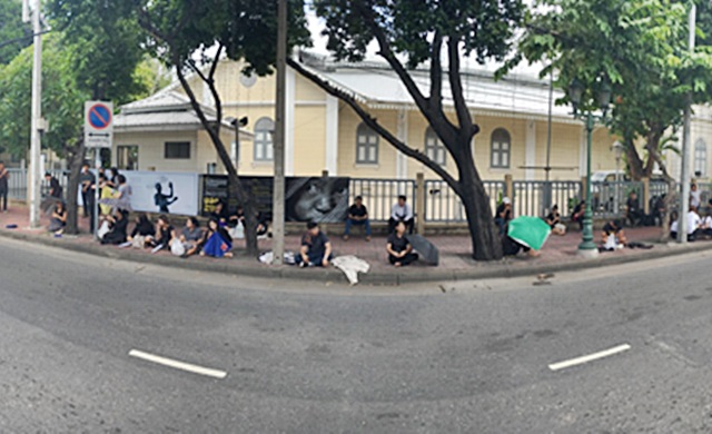 พระบาทสมเด็จพระปรมินทรมหาภูมิพลอดุลยเดช มหิตลาธิเบศรรามาธิบดี จักรีนฤบดินทร สยามินทราธิราช บรมนาถบพิตร โดยประชาชนทุกคนต่างสวมเสื้อสีขาวและสีดำ พร้อมนำอาหาร เครื่องดื่มเตรียมมาจากบ้าน โดยพกร่มและหมวกมาด้วย ขณะที่สภาพอากาศค่อนข้างร้อนอบอ้าว