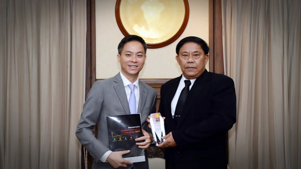 พล.ต.อ.อัศวิน ขวัญเมือง ผู้ว่าราชการกรุงเทพมหานคร (กทม.) ให้การต้อนรับ นายโดนัล ออง ผู้จัดการมาสเตอร์การ์ด ประจำประเทศไทยและเมียนมา พร้อมรับมอบโล่เมืองที่มีผู้มาเยือนมากที่สุดในโลก ติดต่อกันเป็นปีที่ 2 จากผลสำรวจสุดยอดจุดหมายปลายทางโลกโดยมาสเตอร์การ์ด (the Mastercard Global Destination Cities Index Survey หรือ GDCI) ประจำปี 2560