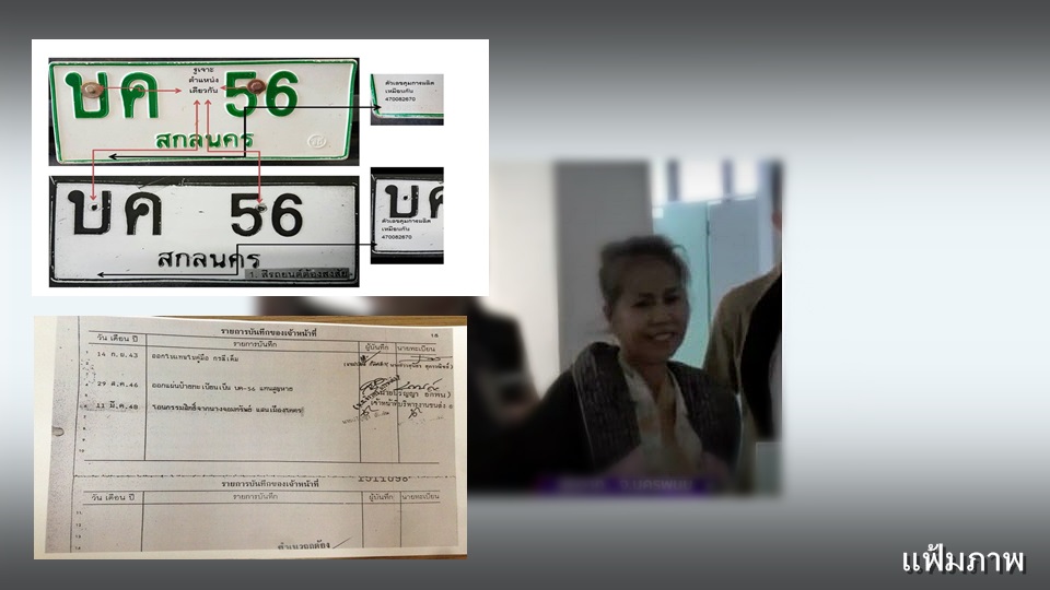 หลักฐานแผ่นป้ายทะเบียนรถ บค 56 สกลนคร ที่ระบุว่าไม่เคยเกิดอุบัติเหตุ เคยมีการเปลี่ยนจริงในปี2546 ก่อนเกิดอุบัติเหตุในปี2548 เป็นหลักฐานสำคํญชิ้นหนึ่งที่ทีมรื้อคดีครูจอมทรัพย์ ของกระทรวงยุติธรรมเตรียมนำไปชี้แจงกับคณะกรรมการตรวจสอบข้อเท็จจริงฯ และพนักงานสอบสวน ที่เตรียมเรียกผู้มีส่วนเกี่ยวข้องทยอยเข้าให้ปากคำในสัปดาห์หน้า