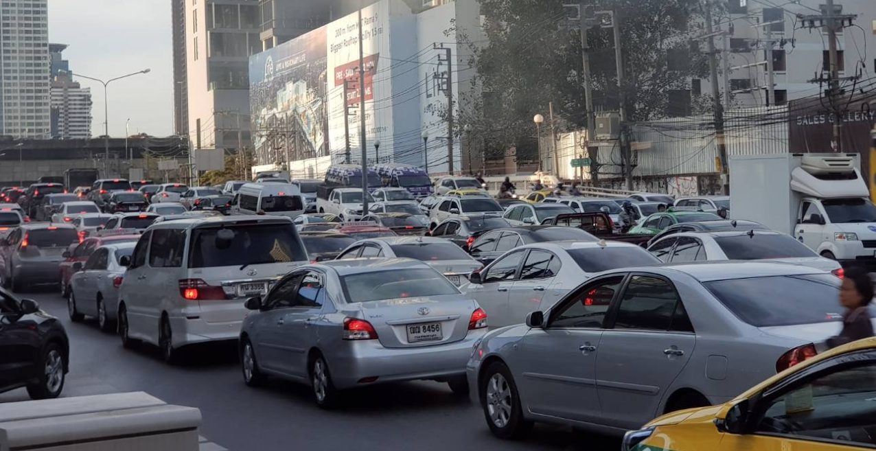 สน.ดินแดง รายงานสภาพจราจรบริเวณแยกพระรามเก้า เข้ากลางซอยอโศก ปริมาณรถหนาแน่นมาก