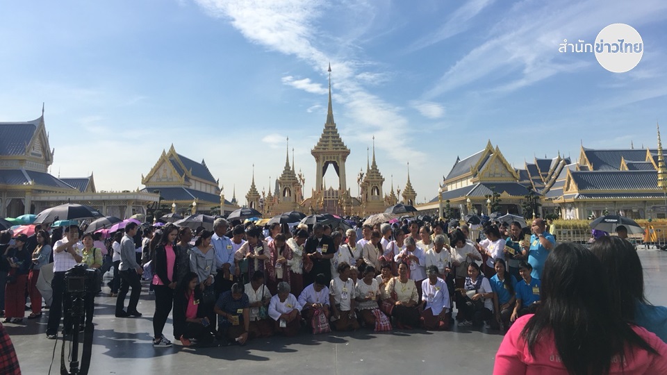 บรรยากาศโดยรอบมณฑลพิธีท้องสนามหลวง มีประชาชนจากทั่วสารทิศ ทยอยเดินทางเข้าชมนิทรรศการเนื่องในพระราชพิธีถวายพระเพลิงพระบรมศพพระบาทสมเด็จพระปรมินทรมหาภูมิพลอดุลยเดชอย่างต่อเนื่อง โดยผ่านจุดคัดกรองสำหรับประชาชนทั่วไปตั้งแต่เวลา 5 นาฬิกา ทั้ง 4จุด คือ พระแม่ธรณีบีบมวยผม วงเวียน รด. กระทรวงกลาโหม และท่าช้าง