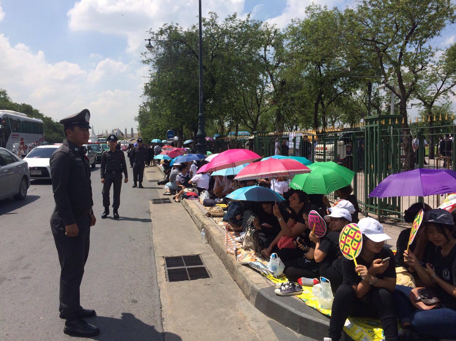 เวลา 09.00น.บรรยากาศบริเวณสนามหลวง มีประชาชน นักเรียน นักศึกษา ทุกวัย มานั่งจับจองพื้นที่โดยรอบ ซึ่งมีการนำพระบรมฉายาลักษณ์ ธงชาติไทย ธงตราสัญลักษณ์ ภปร.เพื่อร่วมถวายความอาลัยในพระราชพิธีเคลื่อนพระบรมศพพระบาทสมเด็จพระเจ้าอยู่หัว ในพระบรมโกศฯ จากโรงพยาบาลศิริราช ไปยังพระบรมมหาราชวัง ในเวลา 13.00 นาฬิกา