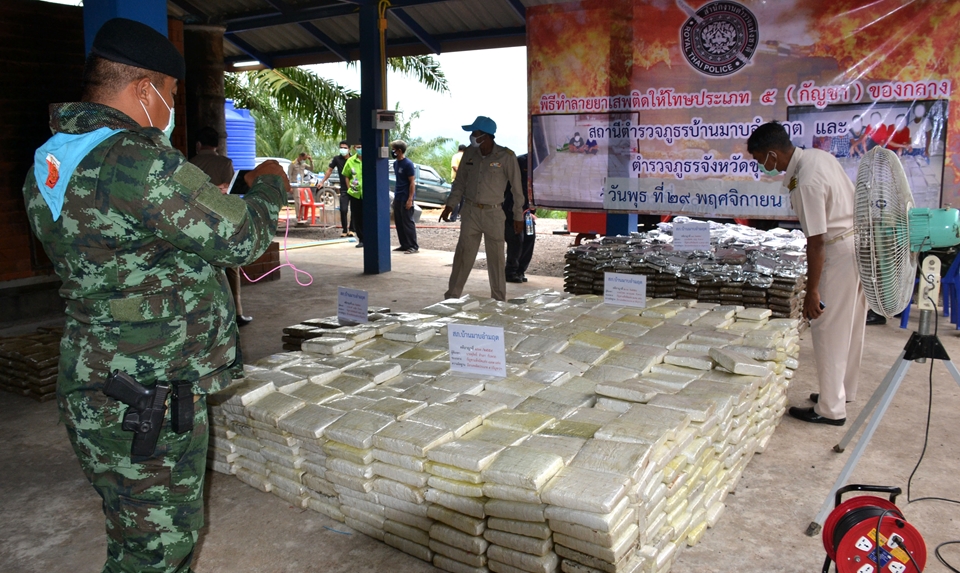 ยาเสพติดของกลางที่ถูกเผาทำลายดังกล่าว เป็นกัญชาแห้งอัดแท่งที่เจ้าหน้าที่ตำรวจและทหารด่านตรวจความมั่นคงประตูภาคใต้(บ้านพละ) ถนนเพชรเกษม ต.เขาไชยราช อ.ปะทิว จับกุมได้ในช่วง พ.ศ.2558-2559 จำนวน 3,423 กิโลกรัม ประกอบด้วย ความผิดตามคดีอาญาที่ 34/2558 จำนวน 1,584 กก.คดีอาญาที่ 203/2558 จำนวน 292 กก.คดีอาญาที่ 26/2559 จำนวน 250 กก.คดีอาญาที่ 29/2559 จำนวน 400 กก.และคดีอาญาที่ 163/2559 จำนวน 897 กก.รวมทั้งหมด 3,423 กก.