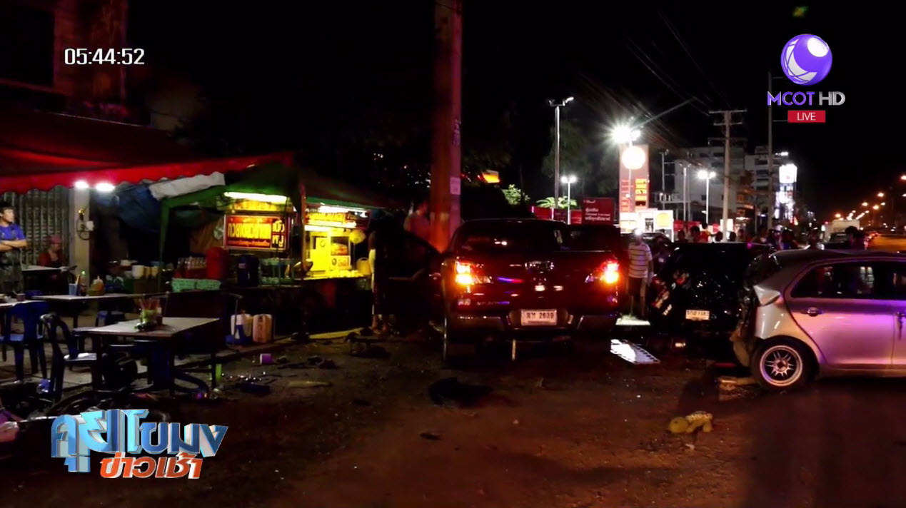 นครปฐม 30 พ.ย. – เมื่อเวลา 23.30 น.ที่ผ่านมา เกิดเหตุรถปิกอัพ มาสด้า สีแดง ทะเบียน ฆห 2639 กทม. เสียหลักพุ่งชนรถยนต์เก๋ง โตโยต้า วีออส สีบรอนซ์ ทะเบียน กพ 5812 นครปฐม ซึ่งจอดอยู่ริมถนน และยังเสียหลักไปชนกับรถยนต์เก๋งมิซซูบิชิ มิราจ สีดำ ทะเบียน 5 กฮ 1482 กทม. และรถจักรยานยนต์ฮอนด้าเวฟ สีนำเงิน ทะเบียน ขพจ 4 นครปฐม ก่อนจะพุ่งเข้าไปชนโต๊ะในร้านก๋วยเตี๋ยวริมถนนเพชรเกษม หมู่ 4 ต.ท่าตำหนัก อ.นครชัยศรี จ.นครปฐม มีผู้ได้รับบาดเจ็บสาหัส 1 ราย คือ น.ส.แคทรียา เมืองแพน เป็นพนักงานห้างโลตัส สาขานครชัยศรี ซึ่งโดยสารมากับรถยนต์เก๋งมิซซูบิชิ มิราจ เจ้าหน้าที่กู้ภัยช่วยเหลือปั๊มหัวใจและนำส่งโรงพยาบาลนครชัยศรี แต่เสียชีวิตในเวลาต่อมา
