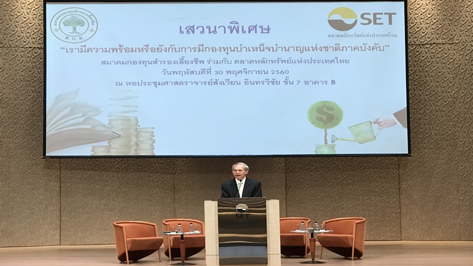 ตลท. 30 พ.ย. – นายกสมาคมกองทุนสำรองเลี้ยงชีพ จี้รัฐเร่งตั้งกองทุนบำเหน็ญบำนาญแห่งชาติโดยเร็ว เพื่อดูแลชีวิตหลังเกษียณ