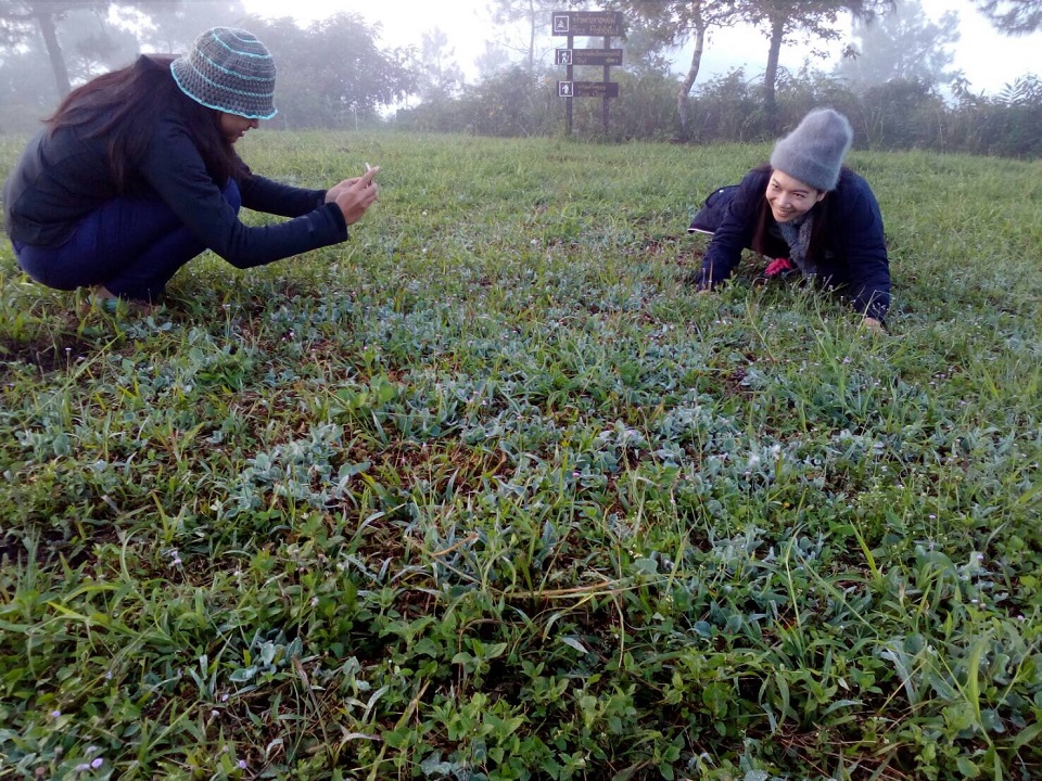 นายรุ่ง หิรัญวงศ์ หัวหน้าอุทยานแห่งชาติดอยอินทนนท์ จ.เชียงใหม่ แจ้งว่าสภาพอากาศเช้านี้ (1 ธ.ค.) แจ่มใสเย็นสบาย อุณหภูมิลดต่ำสุดครั้งแรกของปีนี้ที่กิ่วแม่ปาน 3 องศาเซลเซียส ยอดหญ้าต่ำกว่า 0 องศาฯ เกิดปรากฏการณ์น้ำค้างแข็งหรือแม่คะนิ้งช่วงแรกมาเป็นวันที่ 2 บนดอยอินทนนท์ โดยบริเวณ กม.45 มีเหมยขาบเป็นบริเวณกว้าง มีนักท่องเที่ยวเข้ามาตั้งแต่วันที่ 30 พฤศจิกายน 2560 จำนวน 2,122 คน เมื่อรวมทั้งเดือนพฤศจิกายน จำนวน 23,255 คน