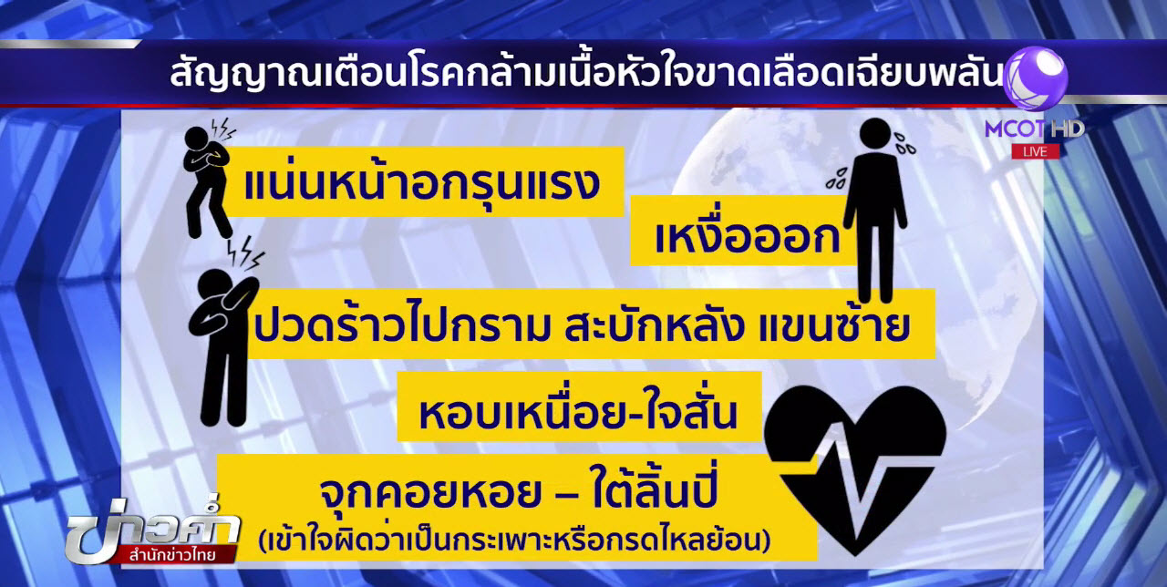 กรุงเทพฯ 1 ธ.ค.-โรคหัวใจถือว่าเป็นภัยเงียบใกล้ตัว โดยแพทย์เตือนอาการเจ็บแน่นหน้าอกอย่างรุนแรง รวมถึงอาการเหนื่อย หายใจไม่ทัน หรือจุกใต้ลิ้นปี่ อาจเสี่ยงเป็นโรค “กล้ามเนื้อหัวใจขาดเลือดเฉียบพลัน”