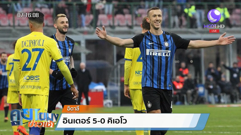 ฟุตบอลกัลโช เซเรีย อา อิตาลี เมื่อคืนนี้ “งูใหญ่” อินเตอร์ มิลาน ทีมอันดับ 3 ของตารางที่มี 36 คะแนน เปิดสนาม จูเซ็ปเป้ เมียซซ่า พบกับ คิเอโว โดยเกมนี้ เจ้าถิ่นโหมบุกหนักตั้งแต่ต้นเกม หวังเก็บชัยชนะให้ได้เพื่อตำแหน่งจ่าฝูง ปรากฏว่า เก็บชัยชนะได้ขาดลอย 5-0 ได้ประตูจาก อิวาน เปริซิช ที่กดแฮตทริก ในนาทีที่ 23, 57 และ 90+2, เมาโร อิคาร์ดี นาที 38, มิลาน สเคอริเนียร์ นาที 60 ชัยชนะเกมนี้ทำให้ อินเตอร์ มิลาน เก็บเพิ่มเป็น 39 คะแนน จากผลงานชนะ 12 เสมอ 3 ยังแพ้ไม่เป็น โกยแต้มแซง นาโปลี ขยับขึ้นไปนำเป็นจ่าฝูงของตารางแทนที่ ด้าน คิเอโว มี 20 คะแนนเท่าเดิม จาก 15 นัด อันดับอยู่ในโซนกลางตาราง