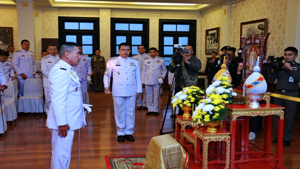 จากนั้นจุดธูปเทียนเครื่องนมัสการบูชาพระรัตนตรัยและถวายความเคารพเบื้องหน้าพระบรมฉายาลักษณ์พระบาทสมเด็จพระปรมินทรมหาภูมิพลอดุลยเดช บรมนาถบพิตร ต่อมาร่วมพิธีตักบาตรพระสงฆ์ที่บริเวณหน้าอาคาร 1 สำนักงานตำรวจแห่งชาติ โดยมีข้าราชการตำรวจ เข้าร่วมพิธีด้วย