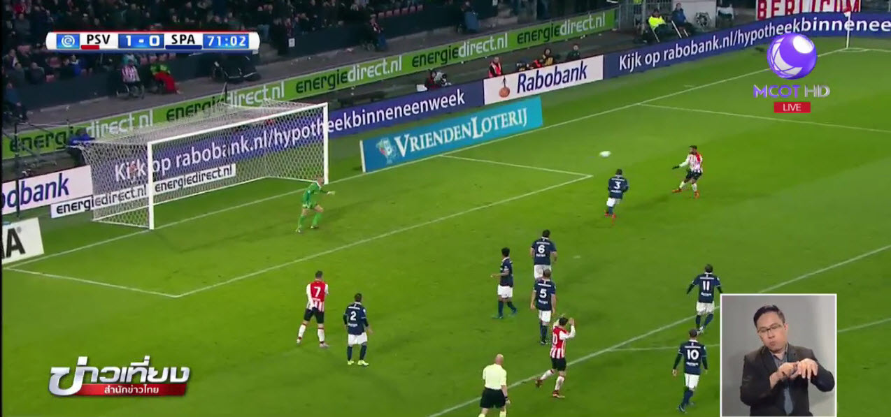 ฟุตบอลเอเรดิวิซี่ ลีก เนเธอร์แลนด์ นัดที่ 14 พีเอสวี ไอน์ดโฮเฟ่น ทีมจ่าฝูง เสื้อแดงขาว เปิดฟิลลิปส์ สตาดิโอน พบ สปาร์ตา ร็อตเดอร์ดัม ทีมอันดับ 16 ของตาราง ครึ่งแรกทั้งสองทีมยังทำอะไรกันไม่ได้เสมอกัน 0-0 ครึ่งหลังนาทีที่ 52 ลุค เดอ ยอง ทำประตูให้เจ้าถิ่นขึ้นนำก่อน 1-0 นาทีที่ 71 เจ้าถิ่นเกือบได้ประตูหนีห่าง 2-0 แต่ลูกยิงของมาร์โค วาน กิงเคล ไปชนคาน จบเกมพีเอสวี ไอน์ดโฮเฟ่น เปิดบ้านเอาชนะ สปาร์ตา ร็อตเดอร์ดัม 1-0 นำเป็นจ่าฝูงต่อไป แข่ง 14 นัด มี 39 คะแนน ส่วนร็อตเตอร์ดัม อยู่อันดับ 16 มี 11 คะแนน