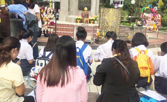 บรรยากาศบริเวณลานพระราชานุสาวรีย์ สมเด็จพระมหิตลาธิเบศร อดุลยเดชวิกรม พระบรมราชชนก ตั้งแต่ช่วงเช้าเป็นต้นมา มีประชาชนทั้งจาก กทม.และปริมณฑล เดินทางมาสวดมนต์ถวายพระพรแด่พระบาทสมเด็จพระเจ้าอยู่หัวอย่างต่อเนื่อง โดยส่วนใหญ่สวดบท ‘โพชฌังคปริตร’ ซึ่งเป็นบทสวดขจัดโรคภัยไข้เจ็บ เพื่อให้พระบาทสมเด็จพระเจ้าอยู่หัว ทรงหายจากพระอาการประชวร โดยประชาชนที่มาวดมนต์ส่วนใหญ่เป็นผู้ที่เคยร่วมสวดมนต์ถวายพระพรที่วัดพระศรีรัตนศาสดาราม และวัดบวรนิเวศวิหาร
