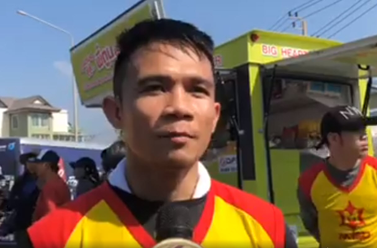 เจ้าแหลม ศรีสะเกษ นครหลวงโปรโมรชั่น นักมวยแชมป์โลกรุ่นซุปเปอร์ฟลายเวต WBC เปิดใจกับสำนักข่าวไทย ที่ได้มาร่วมวิ่งในโครงการก้าวคนละก้าว กับ “ตูน บอดี้สแลม” วันนี้ 6 ธ.ค.60 บอกว่ารู้สึกดีใจ เป็นอย่างมากที่ได้มีโอกาสเป็นส่วนหนึ่งของโครงการ ระหว่างทางเห็นรอยยิ้ม และกำลังใจจากประชาชนที่มอบให้พี่ตูนและทีมงานแล้วรู้สึกปลื้มแทน และคิดว่าตนเองคงทำไม่ได้เท่าพี่ตูน ที่เริ่มวิ่งจากเบตง-แม่สาย พี่ตูนทำเพื่อช่วยเหลือประชาชนทุกคน รู้สึกดีใจ ปลื้มใจกับสิ่งที่พี่ตูนทำ ทำให้คนไทยมีรอยยิ้ม สุดท้ายนี้ขอให้พี่ตูน ดูแลสุขภาพ ขอวิ่งให้ถึงเส้นชัย.-สำนักข่าวไทย