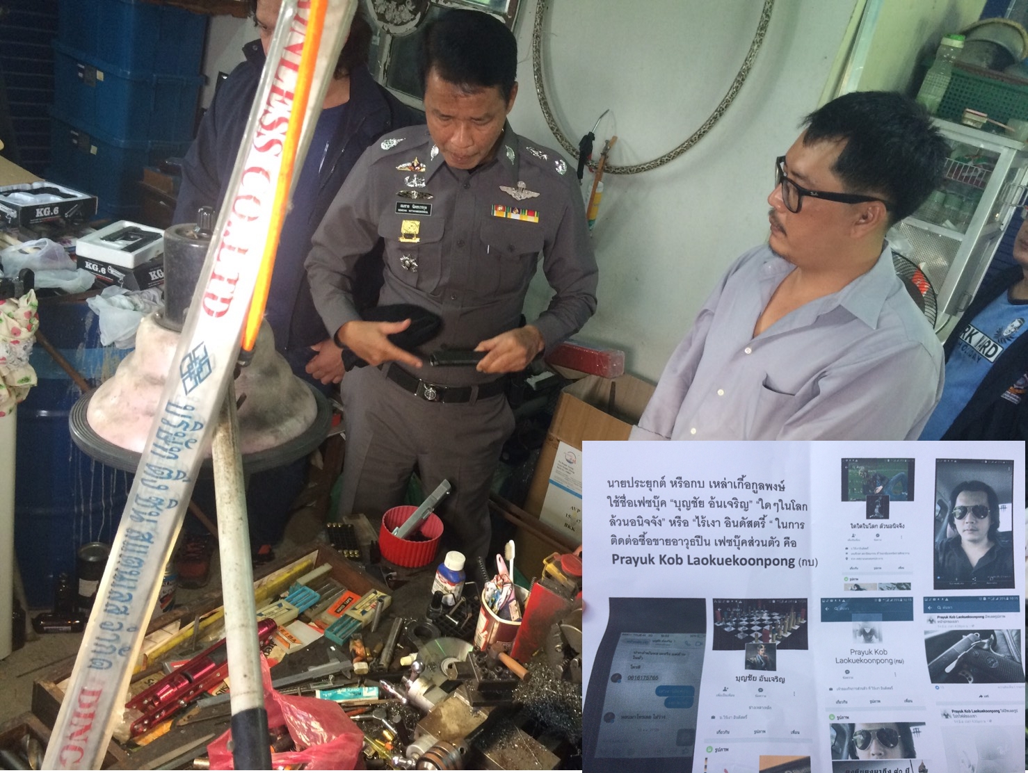 ตำรวจชุดสืบสวนสอบสวนนครบาล เข้าจับกุมนายประยุกต์ เหล่าเกื้อกูลพงษ์ อายุ 39 ปี ที่ประชาอุทิศ 72 ย่านทุ่งครุ หลังขยายผลจากการจับกุมอาวุธปืน ย่านคันนายาว เมื่อวันที่ 6 ตุลาคมที่ผ่านมา พบอาวุธปืน 4 กระบอก ทั้งแบบสั้นและยาว พร้อมเครื่องกระสุนกว่า 200 นัด, อุปกรณ์การทำลำกล้องปืนและการทำเกลียวลำกล้องปืน