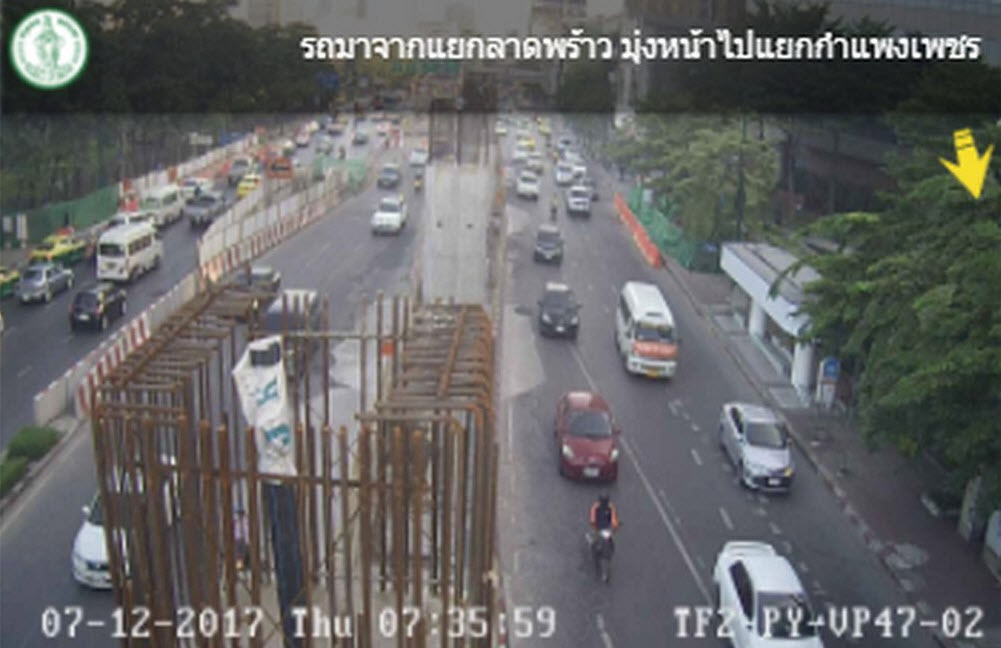 ถนนพหลโยธิน ทั้งขาเข้า และขาออก ผ่านแยกลาดพร้าว รถหนาแน่น เคลื่อนตัวได้ช้าทั้ง 2 ฝั่ง