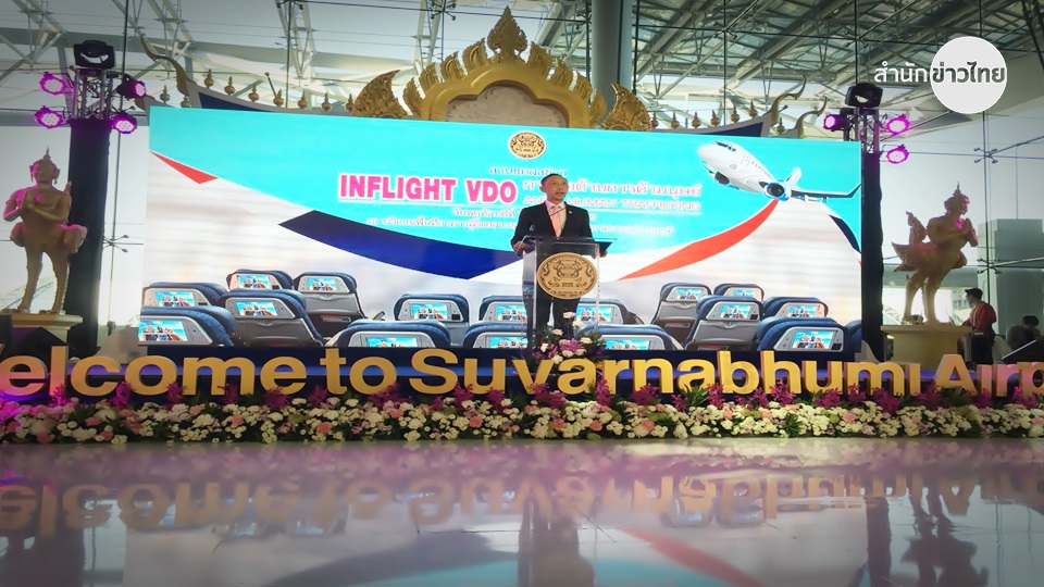 พล.อ.อนันตพร กาญจนรัตน์ รัฐมนตรีว่าการกระทรวงการพัฒนาสังคมและความมั่นคงของมนุษย์ (พม.) ร่วมกับนายอาคม เติมพิทยาไพสิฐ รัฐมนตรีว่าการกระทรวงคมนาคม จัดแถลงข่าวเปิดตัวสื่อประชาสัมพันธ์ต่อต้านการค้ามนุษย์เพื่อเผยแพร่บนเครื่องบิน(INFLIGHT VDO) ณ บริเวณพื้นที่ผู้สารขาเข้า ชั้น 2 ท่าอากาศยานสุวรรณภูมิ
