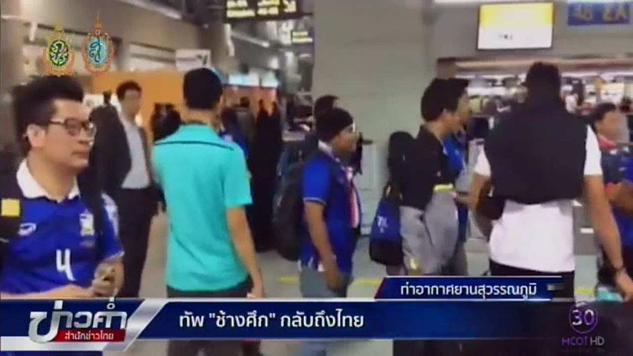 นักเตะทีมชาติไทยชุดฟุตบอลโลก 2018 รอบ 12 ทีมสุดท้าย โซนเอเชีย กลุ่มบี ได้เดินทางกลับถึงเมืองไทยแล้ว หลังจากบุกไปแพ้สหรัฐอาหรับเอมิเรตส์ 1-3 และอิรัก 0-4 ทำให้ทีมไทยเตะไปแล้ว 4 นัดยังไม่มีคะแนน ที่สนามบินสุวรรณภูมิ เที่ยวบิน EY408 บรรยากาศเป็นไปอย่างเงียบเหงา ซึ่งแฟนบอลอาจจะไปรออีกประตูทางออกของสุวรรณภูมิ โดยมี “ซิโก้” เกียรติศักดิ์ เสนาเมือง หัวหน้าผู้ฝึกสอน และนายขจร เจียรวนนท์ ผู้จัดการทีมพร้อมนักเตะและสตาฟโค้ช การเดินทางกลับมาครั้งนี้ ปทุม ชูทอง เซ็นเตอร์ฮาล์ฟของไทยจากสโมสรเชียงรายไม่ได้เดินทางกลับมาด้วย โดยยังต้องดูอาการอีก1-2 วันหลังปะทะกับ กวิน ธรรมสัจจานันท์ ผู้รักษาประตู