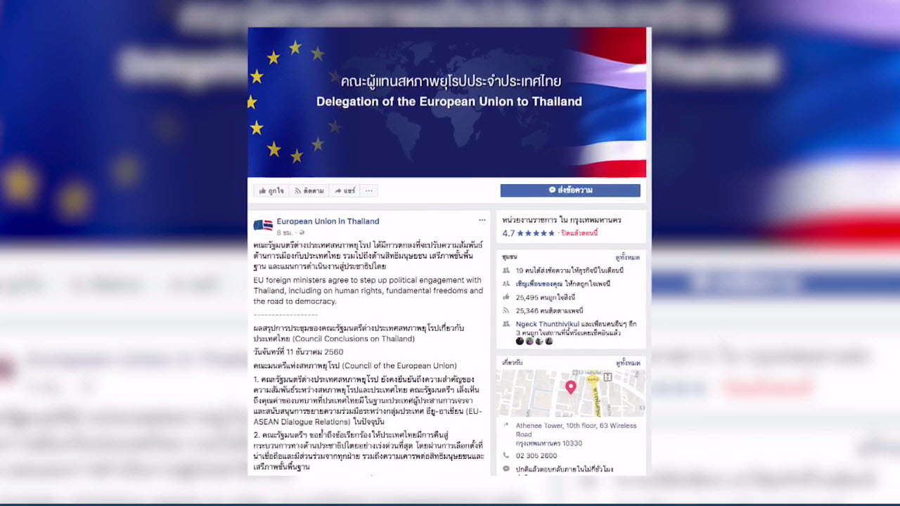 เมื่อวานนี้ (11 ธ.ค.60) โพสต์ข้อความระบุคณะรัฐมนตรีต่างประเทศสหภาพยุโรป ได้มีการตกลงที่จะปรับความสัมพันธ์ด้านการเมืองกับประเทศไทย รวมไปถึงด้านสิทธิมนุษยชน เสรีภาพขั้นพื้นฐาน และแผนการดำเนินงานสู่ประชาธิปไตย โดยผลสรุปการประชุมของคณะรัฐมนตรีต่างประเทศสหภาพยุโรปเกี่ยวกับประเทศไทย (Council Conclusions on Thailand) วันจันทร์ที่ 11 ธันวาคม 2560 ดังนี้