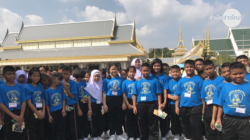 สนามหลวง 13 ธ.ค. – เด็กนักเรียนเดินตามรอยพระราชดำริในหลวงรัชกาลที่ 9 ประทับใจเมื่อมาชมพระเมรุมาศ ขณะที่พยาบาลแนะ พกอุปกรณ์กันแดด ดื่มน้ำเป็นระยะเพื่อลดอุณหภูมิร่างกายในระหว่างเยี่ยมชมเพราะอากาศร้อน