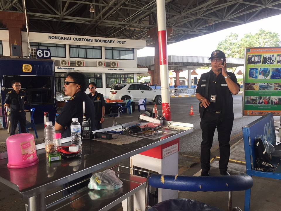 นายนิมิตร แสงอำไพ นายด่านศุลกากรหนองคาย ตรวจตราการผ่านด่านพรมแดนสะพานมิตรภาพไทย – ลาว แห่งที่ 1 อ.เมือง พร้อมกำชับเจ้าหน้าที่เพิ่มมาตรการคุมเข้มเป็นพิเศษ เพื่อป้องปรามการทำผิดกฎหมาย หลังจากเมื่อวันที่ 12 ธ.ค.ที่ผ่านมา ได้ตรวจยึดเงินถึง 98 ล้านบาท พร้อมชายพี่น้องชาว สปป.ลาว ขณะเดินทางด้วยรถยนต์จะข้ามกลับประเทศ โดยอ้างว่าทำธุรกิจแลกเปลี่ยนเงินตรา นำเงินดอลลาร์สหรัฐ 2.8 ล้านเหรียญ มาแลกเป็นเงินบาทไทย