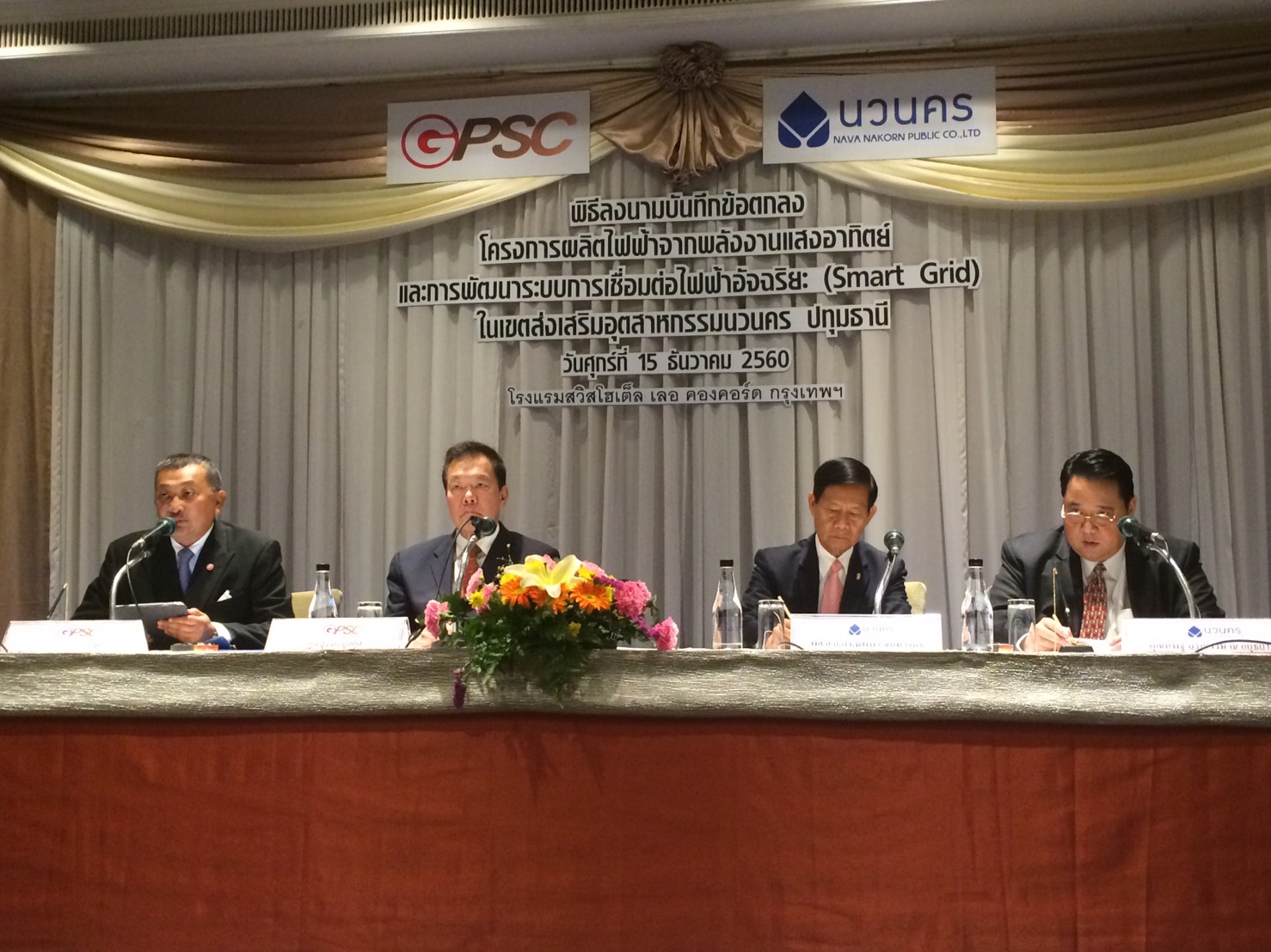 นายเติมชัย บุนนาค ประธานเจ้าหน้าที่บริหารและกรรมการผู้จัดการใหญ่ บริษัท โกลบอล เพาเวอร์ ซินเนอร์ยี่ จำกัด (มหาชน) หรือ GPSC เปิดเผยภายหลังลงนามข้อตกลงร่วมกับบริษัท นวนคร จำกัด (มหาชน) หรือ NNCL เพื่อพัฒนาโครงการผลิตไฟฟ้าพลังงานแสงอาทิตย์ติดตั้งบนหลังคา (โซลาร์รูฟท็อป) พัฒนาเทคโนโลยีระบบกักเก็บพลังงานและพัฒนาระบบการเชื่อมต่อไฟฟ้าอัจฉริยะ (สมาร์ทกริด) ในเขตส่งเสริมอุตสาหกรรมนวนคร ว่า คาดโครงการจะเริ่มดำเนินการต้นปี 2561 โดยมีกำลังการติดตั้งประมาณ 50 เมกะวัตต์ เงินลงทุน 2,000 ล้านบาท