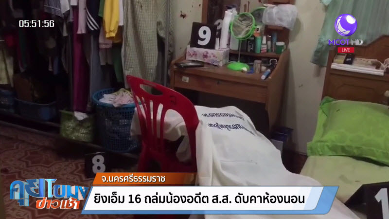 นครศรีธรรมราช 18 ธ.ค. – คนร้ายใช้อาวุธปืนเอ็ม 16 บุกยิงถล่มน้องชายอดีต ส.ส.นครศรีธรรมราช เสียชีวิตคาห้องนอน