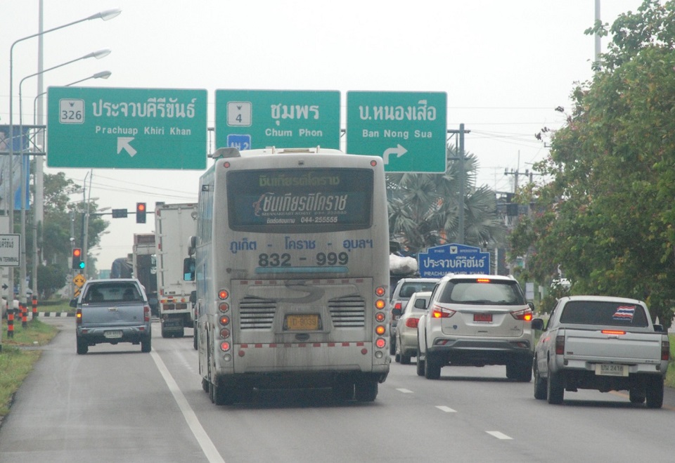 สภาพการจราจรบนถนนเพชรเกษม เขตจังหวัดประจวบคีรีขันธ์ ซึ่งเป็นเส้นทางสายหลักขึ้นล่อง 14 จังหวัดภาคใต้ และวันนี้ (28 ธ.ค.) เป็นวันแรกมาตรการคุมเข้มอุบัติเหตุช่วง 7 วันเฝ้าระวังอันตราย พบว่าช่วงเช้านี้ยังคล่องตัว ไม่มีปริมาณรถสะสม แต่การขับขี่ต้องระมัดระวัง เนื่องจากมีฝนโปรยปราย ทำให้ถนนลื่น เจ้าหน้าที่ตำรวจทางหลวงประจวบคีรีขันธ์ได้ใช้รถวิทยุเปิดไฟวาบเพื่อเตือนให้ระวังการใช้ความเร็วไม่เกิน 90 กิโลเมตรต่อชั่วโมง