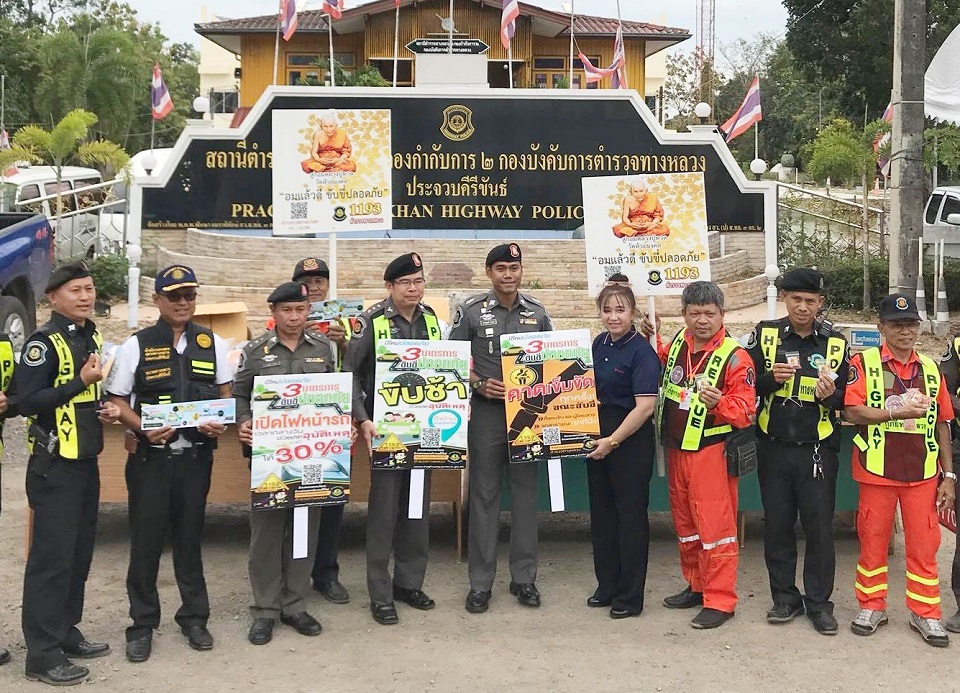 พ.ต.ต ณรงค์ฤทธิ์ งามแฉ่ง สารวัตรสถานีตำรวจทางหลวง 3 กองกำกับการ 2 ( สว.สทล 3 กก.2 ).จ.ประจวบคีรีขันธ์ ร่วมกับแขวงการทางประจวบคีรีขันธ์ เจ้าหน้าที่ประจำจุดตรวจตู้ยามทางหลวง และอาสากู้ภัยทางหลวง ช่วยกันรณรงค์ทุขับขี่ปล่อยภัยในช่วงเทศกาลปีใหม่แก่ผู้สัญจรบนถนนเพชรเกษมขาล่องใต้ มีทั้งแจกหมวกนิรภัย แจกลูกอมหลวงพ่อทวด “อมแล้วดี ขับขี่ปลอดภัย“ ปลุกเสกจากวัดห้วยมงคล นอกจากนี้ ยังให้ผู้ใช้เส้นทางได้สแกนบาร์โค้ดแอปพลิเคชั่นไลน์ ตำรวจทางหลวง หมายเลขสายด่วน 1193 หากมีเหตุฉุกเฉิน อีกทั้งยังมีอาสาสมัครกู้ภัยทางหลวงที่ผ่านการอบรมเป็นอย่างดีแล้ว 200 นาย พร้อมปฏิบัติหน้าที่ใน 4 จุด เส้นทางเพชรเกษม ระยะทาง 220 กิโลเมตร ตั้งแต่ อ.หัวหิน ถึง อ.บางสะพานน้อย