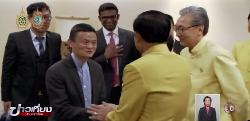 ขณะที่นายแจ็ค หม่า ผู้ก่อตั้งเว็บไซต์อาลีบาบา ซึ่งได้เข้าหารือกับนายสมคิด จาตุศรีพิทักษ์ รองนายกรัฐมนตรี ได้พบกับนายกรัฐมนตรีด้วย โดยนายกรัฐมนตรีกล่าวขอบคุณนายแจ็ค หม่า ที่มาร่วมถ่ายทอดประสบการณ์การทำธุรกิจกับไทย และขอให้นายแจ็ค หม่า ช่วยสร้างความเชื่อมั่นให้นักลงทุนเข้ามาลงทุนในไทย โอกาสนี้ นายกรัฐมนตรีระบุจะขอมอบเสื้อผ้าไหมให้กับนายแจ็ค หม่า ด้วย ทำให้นายแจ็ค หม่า ยิ้มพร้อมกล่าวสั้นๆ ว่า I’m Thai. – สำนักข่าวไทย